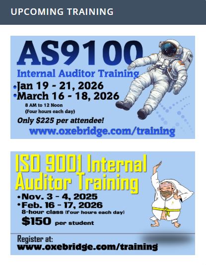 Upcoming ISO 9001 & AS9100 Internal Auditor Training Courses - Oxebridge
