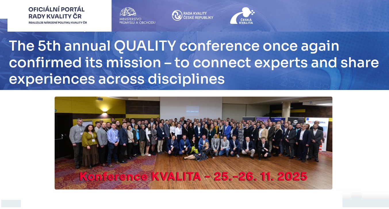 The fifth edition of the Quality Conference was held on November 25–26, 2025, at Hotel Zámek Valeč in Valeč, in the Karlovy Vary Region of the Czech Republic,