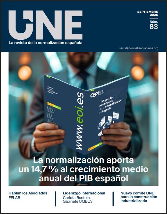 The September edition of Revista UNE, the official magazine of the Asociación Española de Normalización (UNE),