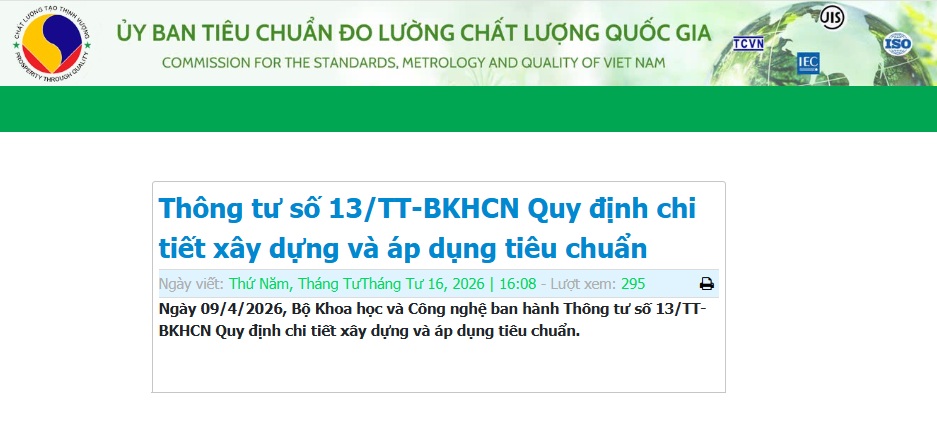 The Ministry of Science and Technology of Vietnam (MST) has issued Circular No. 13/2026/TT-BKHCN, introducing detailed rules for planning, public consultation, and periodic review of national standards in the country.