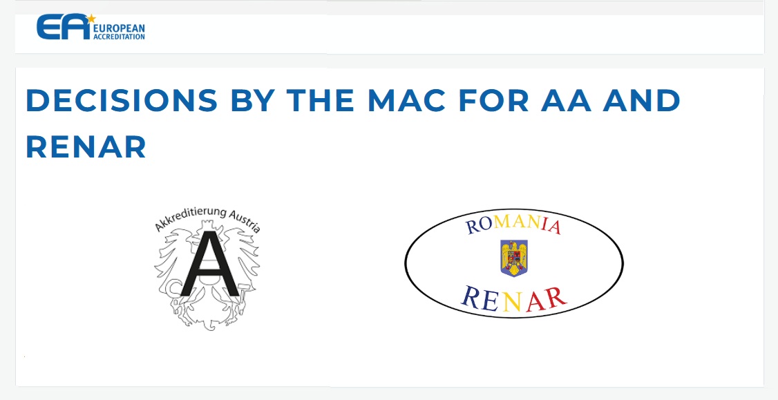 The European co-operation for Accreditation (EA) has confirmed that Accreditation Austria (AA) and the Romanian Accreditation Association (RENAR) will remain signatories to the EA Multilateral Agreement (EA MLA) following their latest peer evaluations.