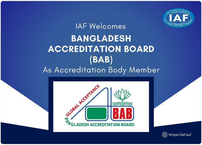 The International Accreditation Forum (IAF) has announced that the Bangladesh Accreditation Board (BAB) has joined as an Accreditation Body Member.