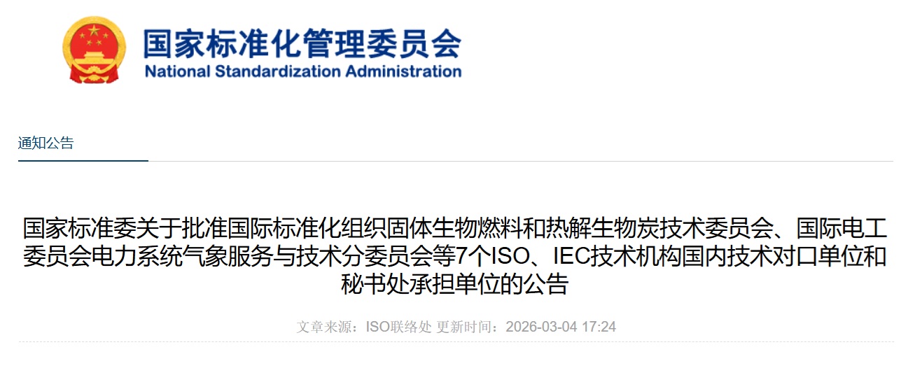 The Standardization Administration of China (SAC) has approved domestic technical counterpart units for seven technical committees within