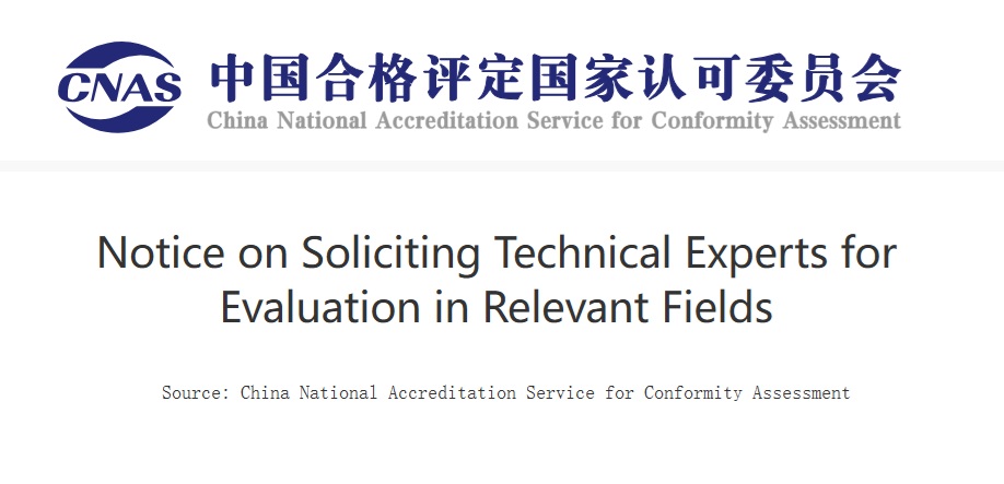 The China National Accreditation Service for Conformity Assessment (CNAS) is recruiting technical experts to support accreditation evaluations for laboratories and inspection bodies across a wide range of technical fields.