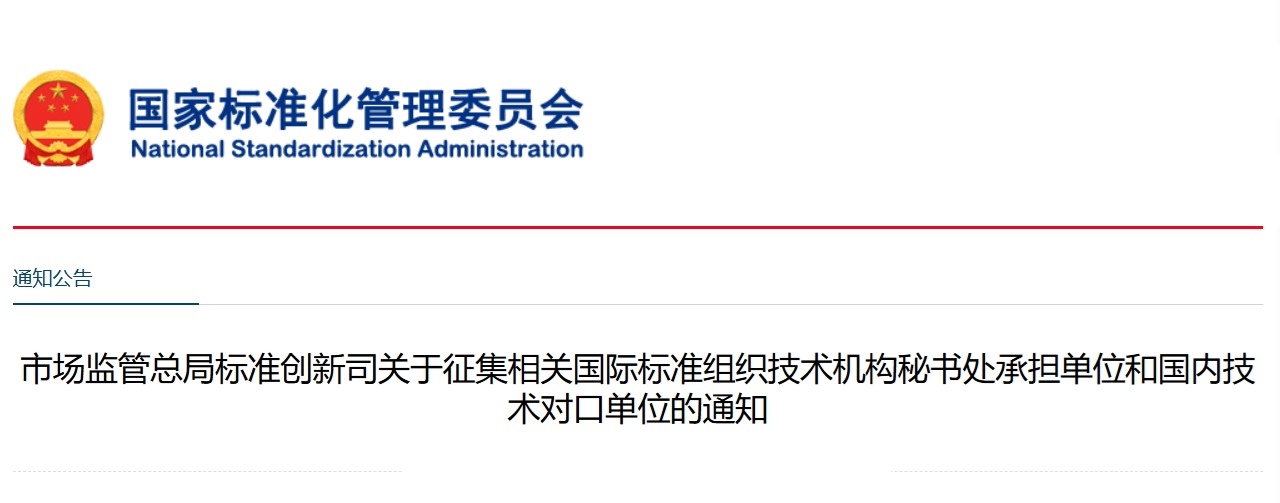 China’s Standards Innovation Department of the State Administration for Market Regulation (SAMR) is seeking an organization to host the secretariat of