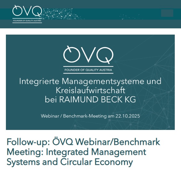 The Austrian Society for Quality (ÖVQ) held an online benchmark meeting, organized as a webinar, in cooperation with Quality Austria.