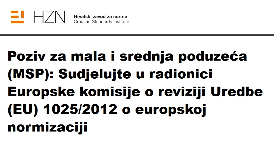 The Croatian Standards Institute (HZN) is encouraging small and medium-sized enterprises (SMEs) to take part in a European Commission (EC) workshop on the revision of the EU Standardization Regulation (EU) No 1025/2012.
