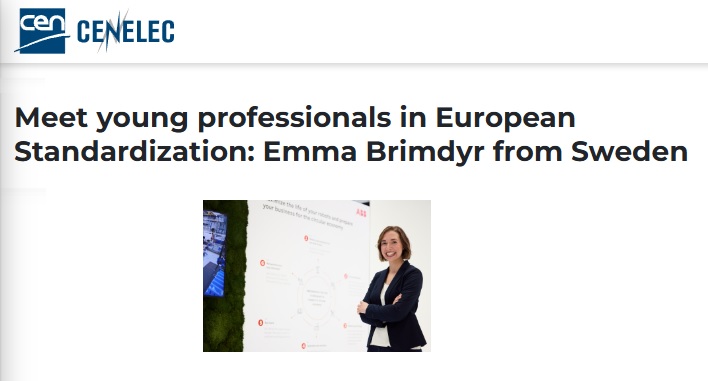 Robotics expert Emma Brimdyr, representing the Swedish Institute for Standards (SIS), is featured in the latest interview of CEN and CENELEC’s Meet Young Professionals in European Standardization series.