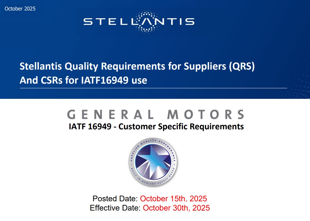 General Motors and Stellantis have both issued updates to their customer-specific requirements (CSRs) under the automotive quality management standard IATF 16949.