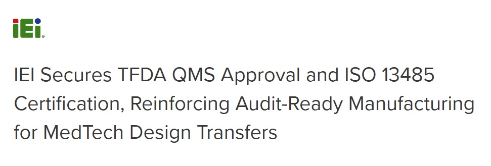IEI Secures TFDA QMS Approval and ISO 13485 Certification