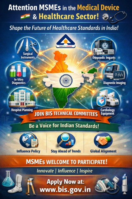 The Bureau of Indian Standards (BIS) is inviting micro, small, and medium enterprises (MSMEs) to join technical committees in its Medical Equipment and Hospital Planning Department (MHD), opening the standardization process to a wider range of industry participants.