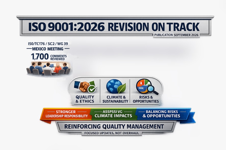 The revision of ISO 9001 has moved into a decisive stage, with international experts completing the review of comments on the Draft International Standard (DIS) and confirming that the new edition is on track for publication in September 2026.