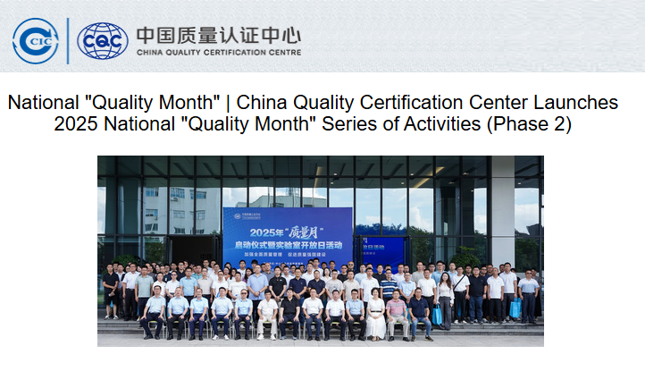 The China Quality Certification Center (CQC) is continuing its nationwide activities for the 48th National Quality Month under the theme “Embracing Innovation and Green Growth, Safeguarding Quality.”