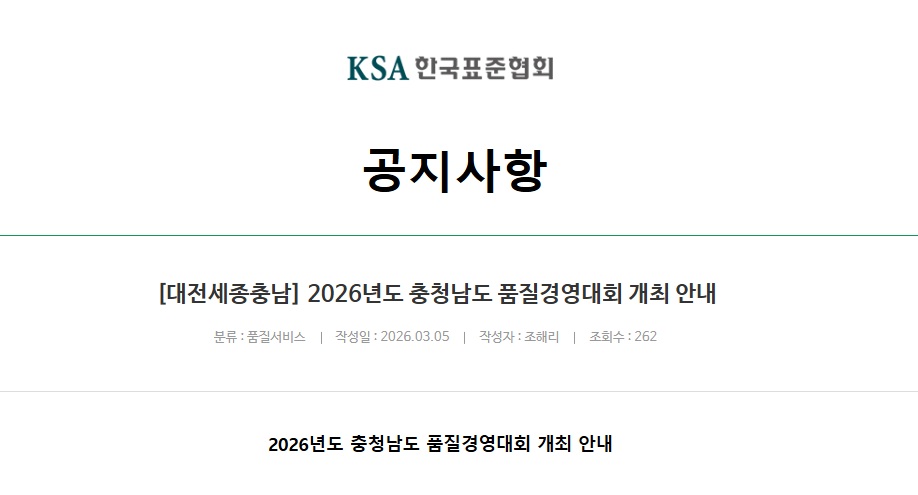 The 2026 South Chungcheong Quality Management Competition will take place June 18-19 at the Splas Resom resort in South Korea.