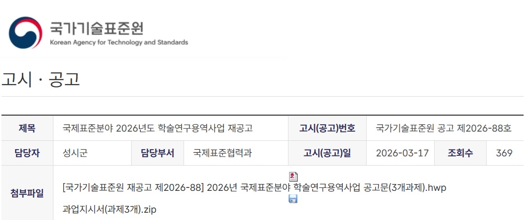 The Korean Agency for Technology and Standards (KATS) has opened a call for 2026 research projects focused on international standardization, inviting institutions and experts to submit proposals by March 30.
