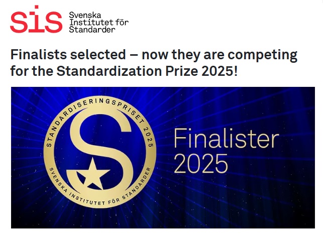Three Finalists Announced for Sweden’s 2025 Standardization Prize